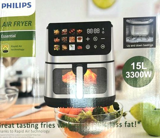 سرخ کن ۱۵ لیتر فیلیپس دارای ۱۲ برنامه پخت پیش فرض با منوی جدید محفظه بزرگ و کاربردی دارای لامپ داخلی جلو پنجره قابلیت تنظیم دما و زمان به صورت دستی داخل استیل