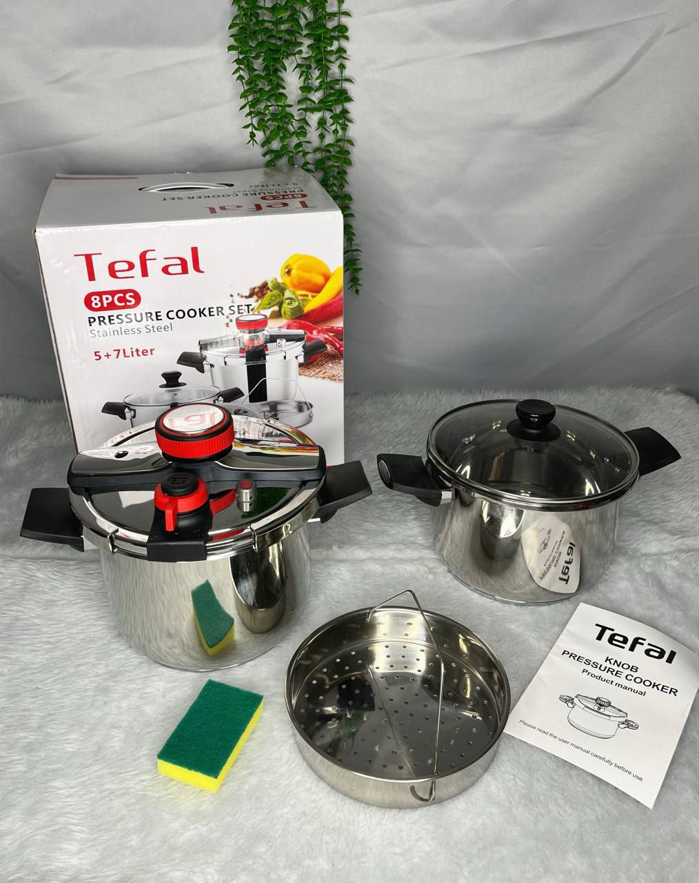 زودپز دوقلو تفال با ظرفیتهای ۵ و ۷ لیتری انتخابی ایدهآل برای خانوادههای کمجمعیت تا پرجمعیت است. طراحی استیل براق با درب ایمن و سوپاپ اطمینان چندگانه، این محصول را به یک گزینه حرفهای و مطمئن تبدیل کرده است.