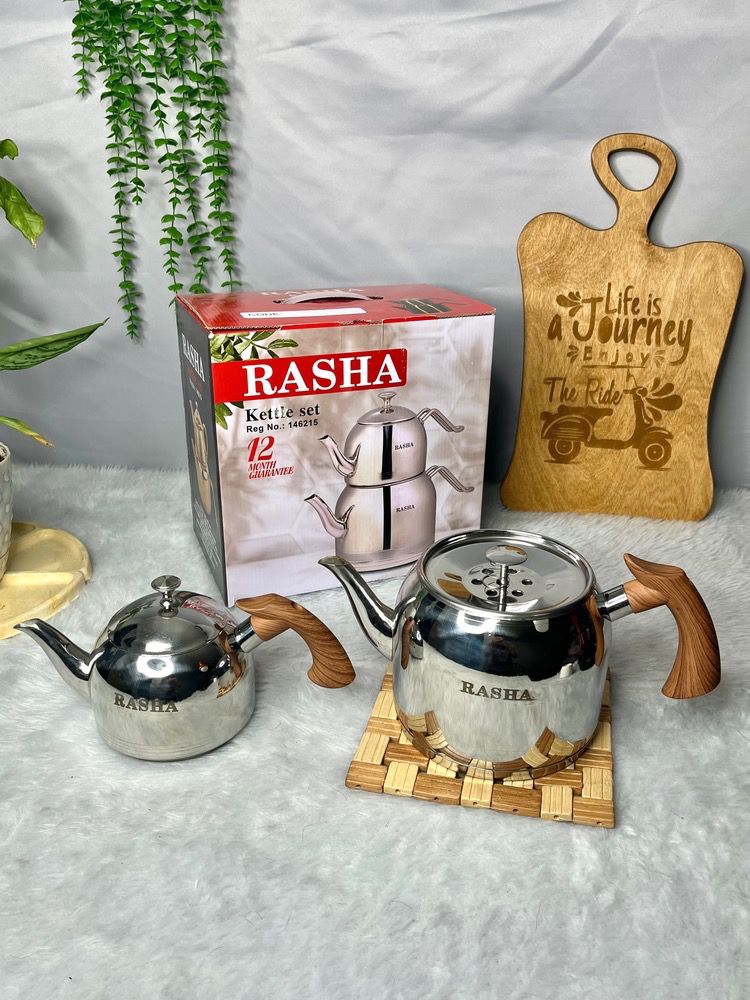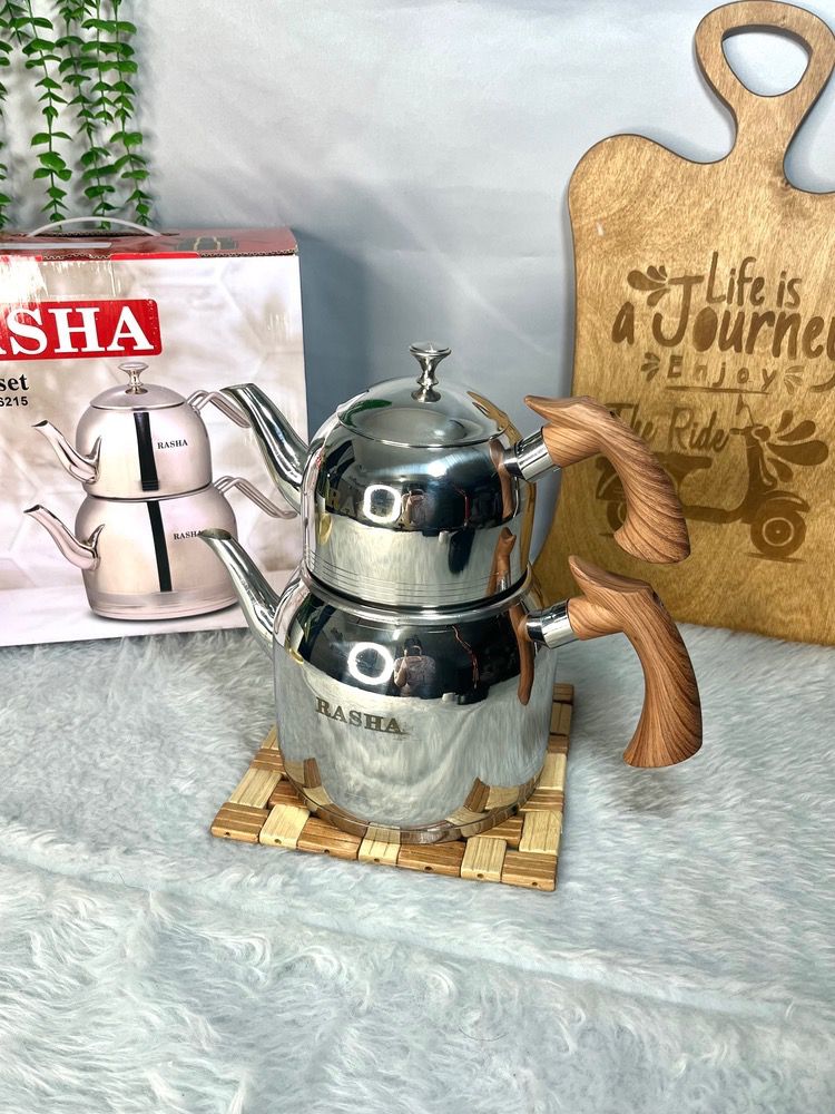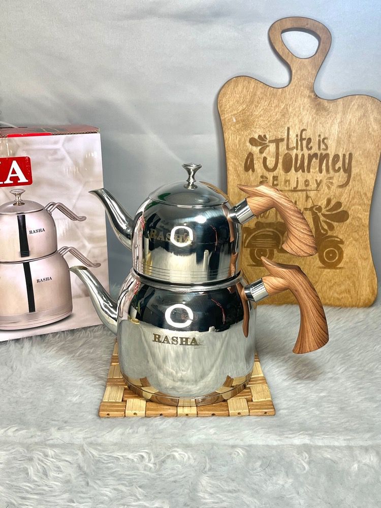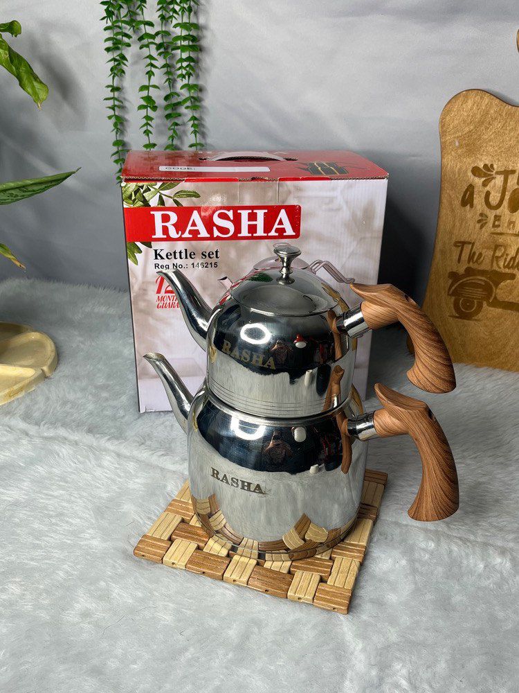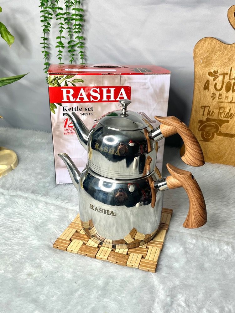 کتری قوری راشا لوله دار دسته چوبی