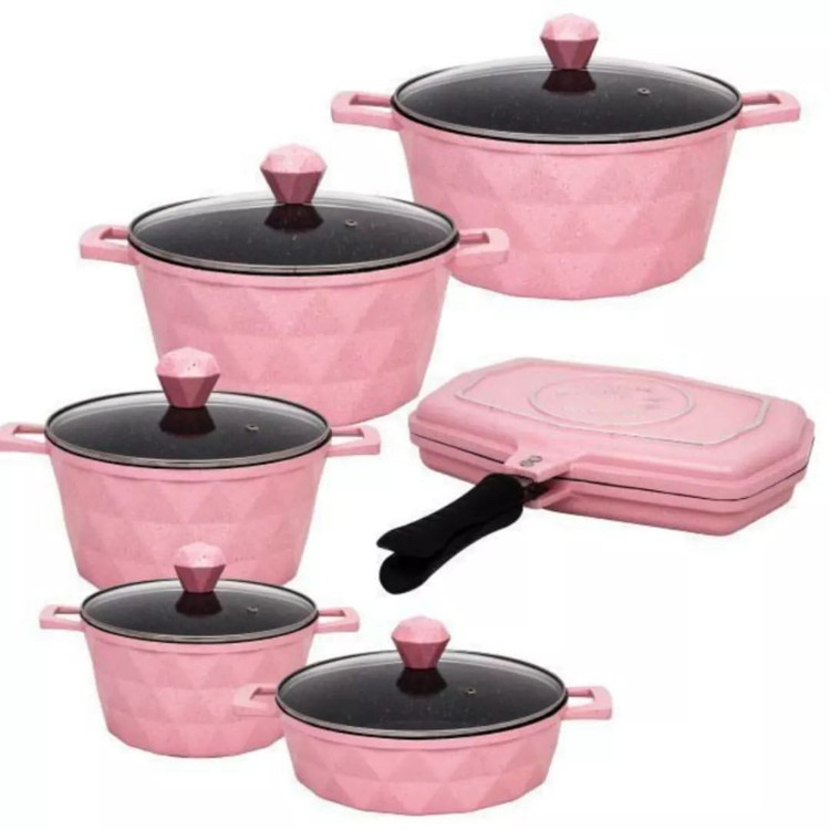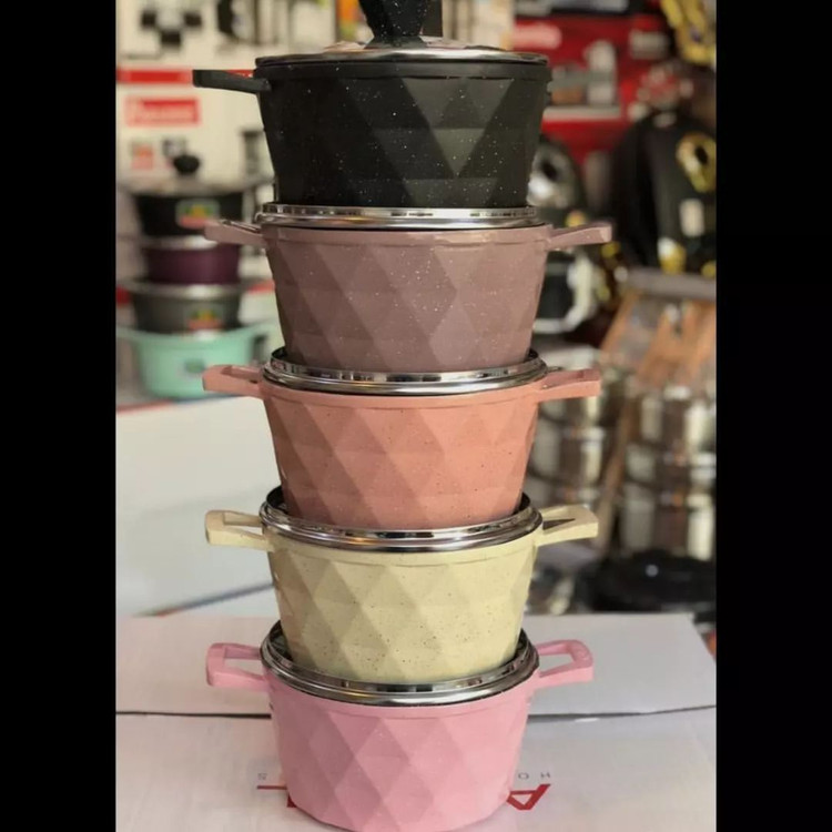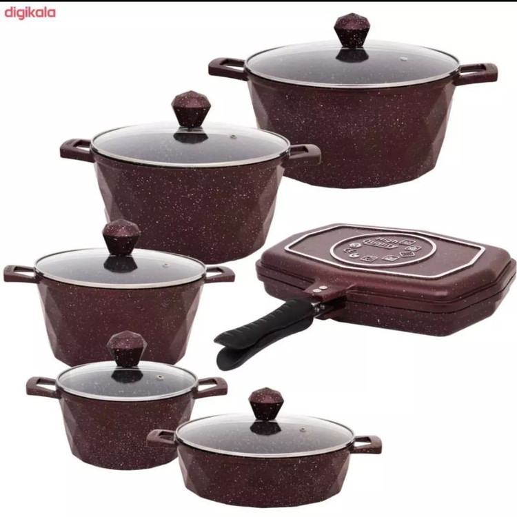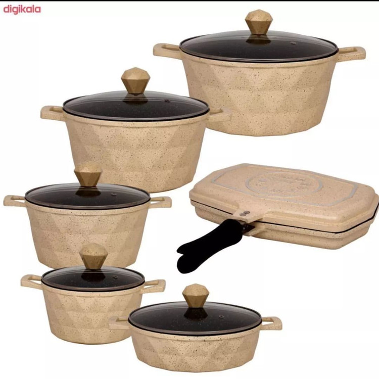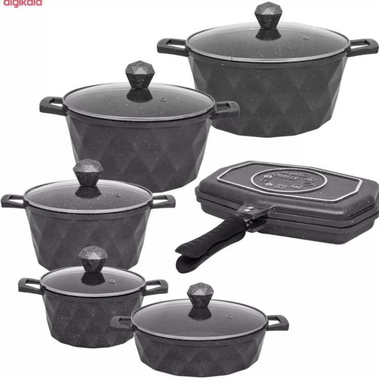 سرویس قابلمه سرویس پخت و پز 12 پارچه برند ایسل جنس چدن الومینیوم درب سوپاپدار. پیرکس سایز قابلمه 18،22،26،30 تابه 26 رژیمی 30 دسته یکپارچه با بدنه جنس بسیار عالی