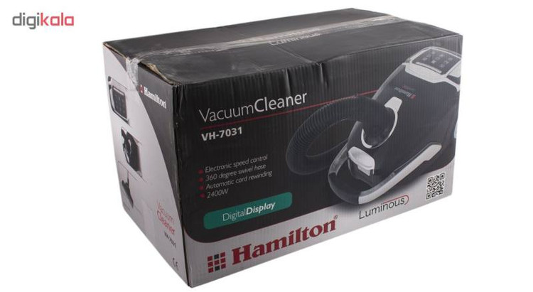 | سایر مشخصات | طول سیم : 8 متر دارای محفظه لوازم جانبی دارای لوله تلسکوپی فلزی دارای تکنولوژی کمترین صدا دارای سیم جمع کن اتوماتیک دارای فیلتر های Hepa قابل شستشو دارای کیسه گردوخاک دائمی پارچه ای امکان چرخش 360 درجه لوله خرطومی دارای کنترل سرعت مکش با نشانگر LED |