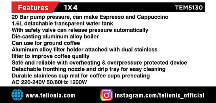 اسپرسو ساز تلیونیکس مدل ۵۱۳۰