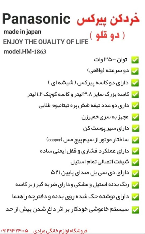 خردکن دوکاسه +پوستکن پاناسونیک 186