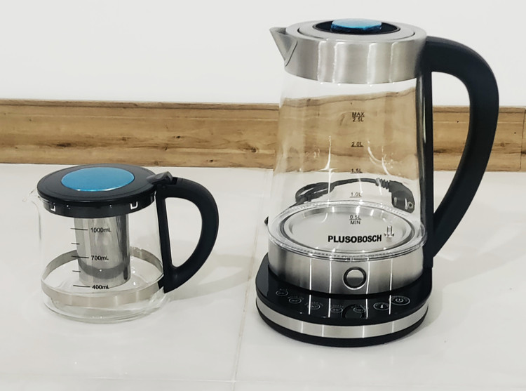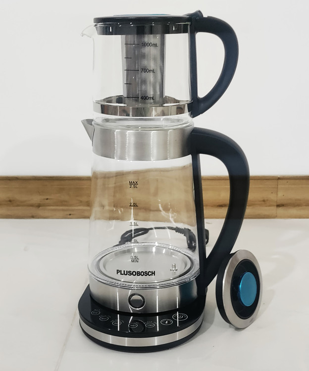 در نگاه اولیه به این دستگاه ما با یک طراحی زیبا و شکیل مواجه میشویم که به طور کلی شامل یک قوری، کتری و خود دستگاه میشود که قوری شامل یک صافی استیل ضد زنگ با حجم حدودی یک لیتر میباشد همچنین کتری این دستگاه با برخورداری از نوار ال ای دی جلوه خاصی به این دستگاه میدهد و کاملاً ضد شوک طراحی گردیده است.خود دستگاه هم که به صورت کاملاً لمسی طراحی گردیده و شامل عملکردهای مختلف میباشد.